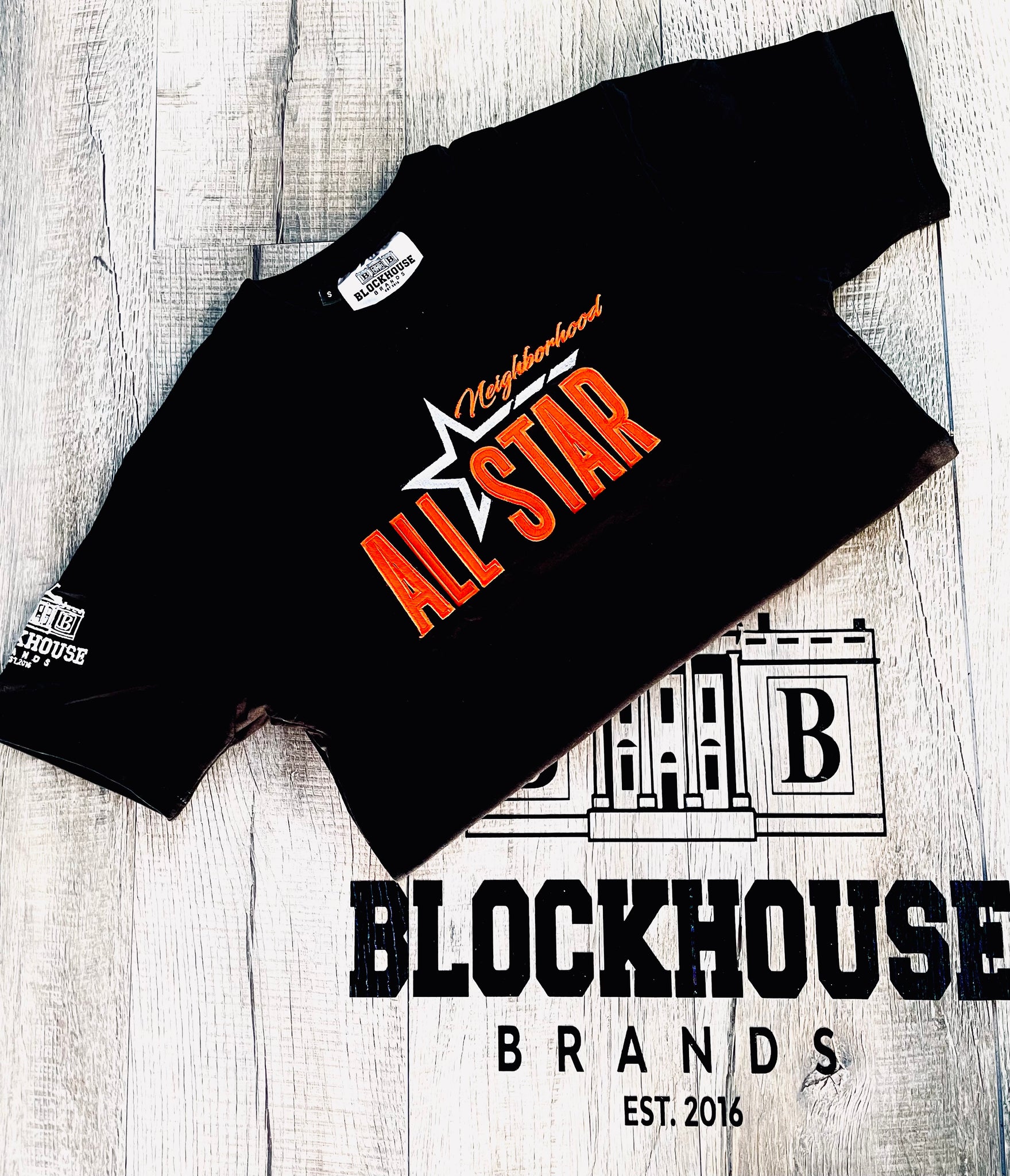 Make A Statement In Our Neighborhood All Star-Black & Orange Tee.